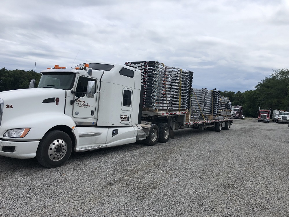 Hinson Trucking specializes in deck freight. We currently run (8) 48’ Flatbeds and (2) 53’ Step Decks. We are apportioned for 48 states and specialize in log hauling on our trailers, but we can haul most any type of deck freight such as steel coils, steel pipe, legal equipment & over dimensional equipment.